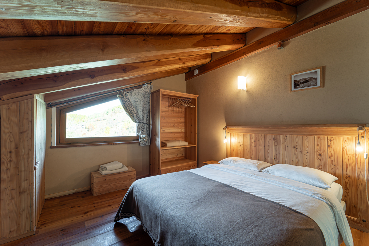 L’alloggio al “civico n. 9” ha accesso attraversando la piccola borgata e raggiungendo l’ultima balconata a sud dell’edificio. L’esposizione di questo appartamento è qualcosa di unico, il balcone che circonda l’estremità dell’edificio, permette di godere una vista da togliere il fiato potendo ammirare l’intera vallata senza alcun ostacolo visivo. L’alloggio è dotato di un’accogliente zona giorno completa di una moderna cucina attrezzata con piano di cottura elettrico, frigorifero, lavello e stoviglie. Salendo la scala in legno si accede ad uno scenografico soppalco in legno che accoglie la zona notte e può ospitare fino a 3 posti letto. L’area è attrezzata con un letto matrimoniale, o in alternativa due letti singoli più un secondo letto singolo. Il soppalco ha due ampi finestroni dai quali si può ammirare l’intera vallata. Non può mancare in una casa di montagna una stufa a legna per riscaldare l’ambiente e un confortevole bagno completo con acqua calda e vasca idromassaggio.
